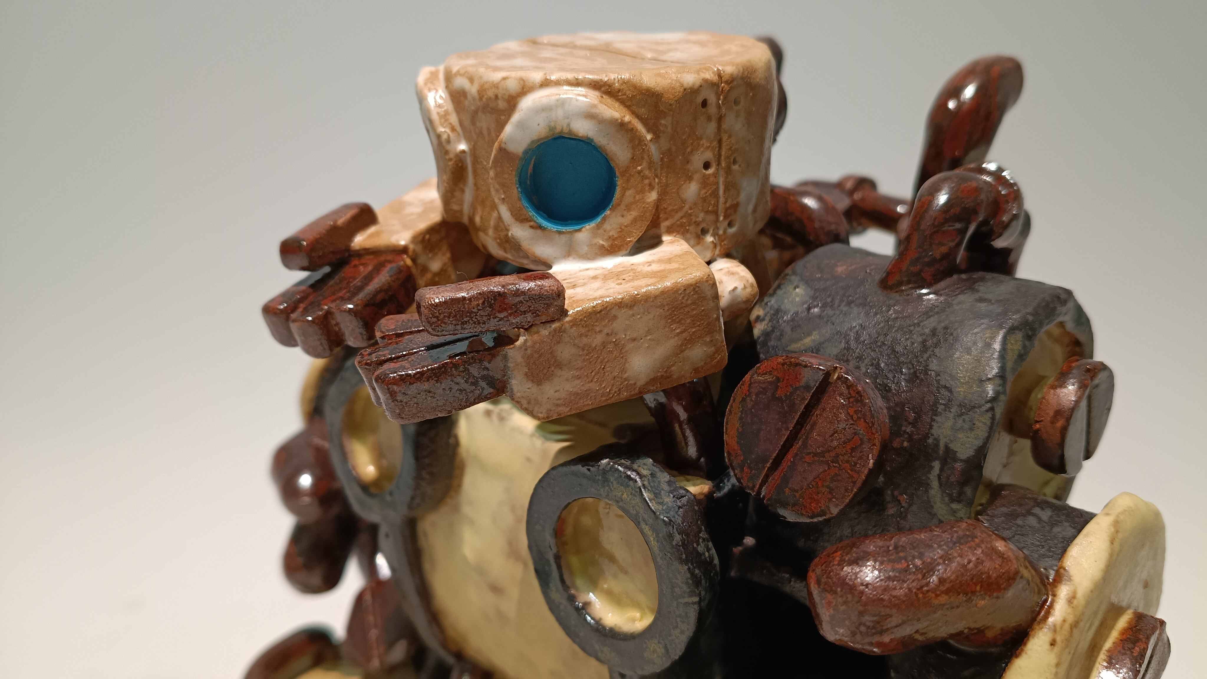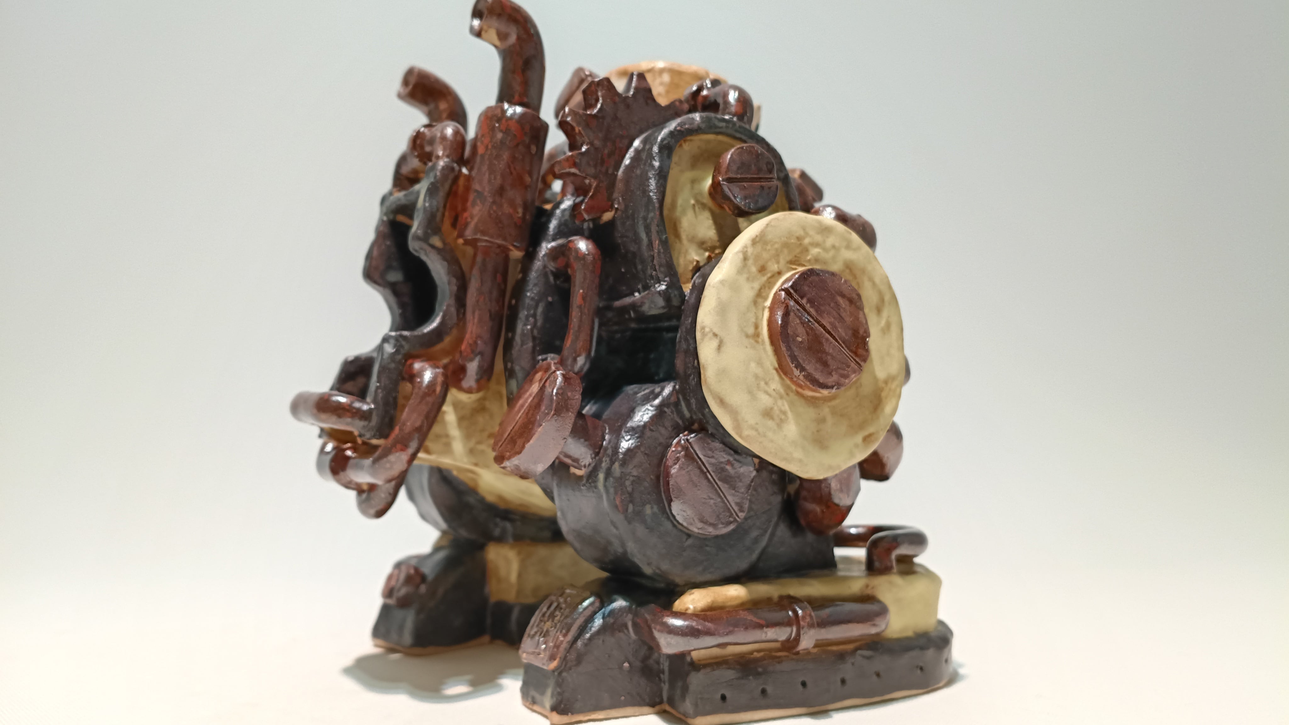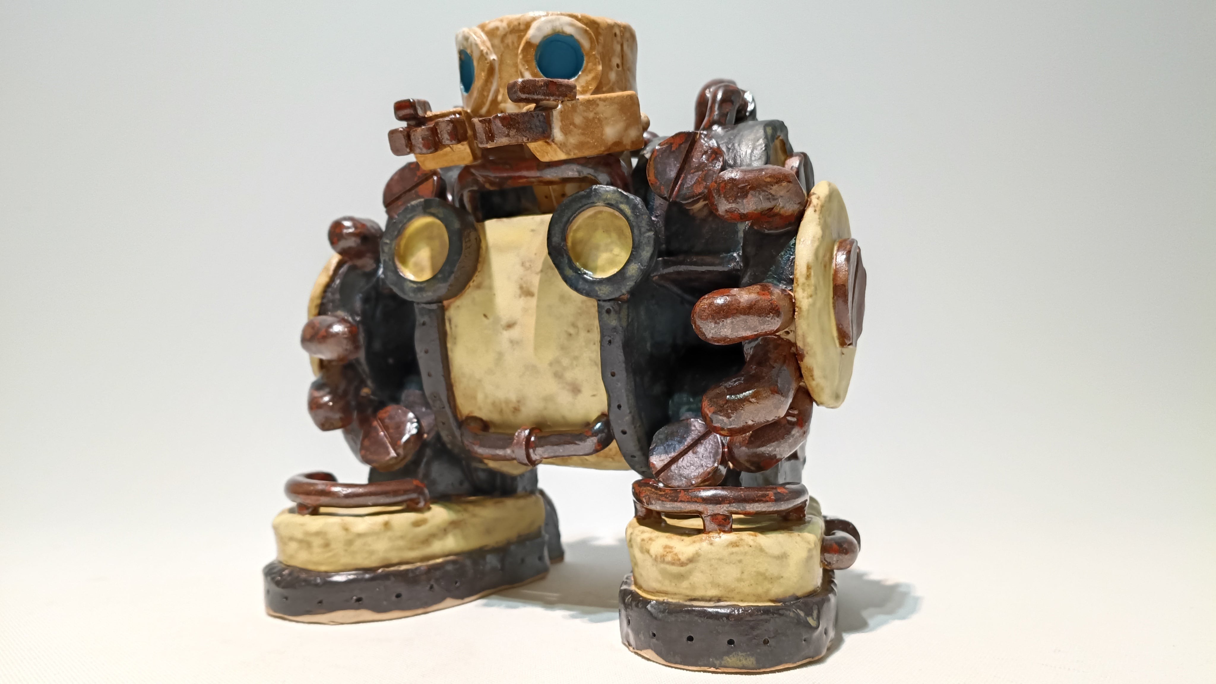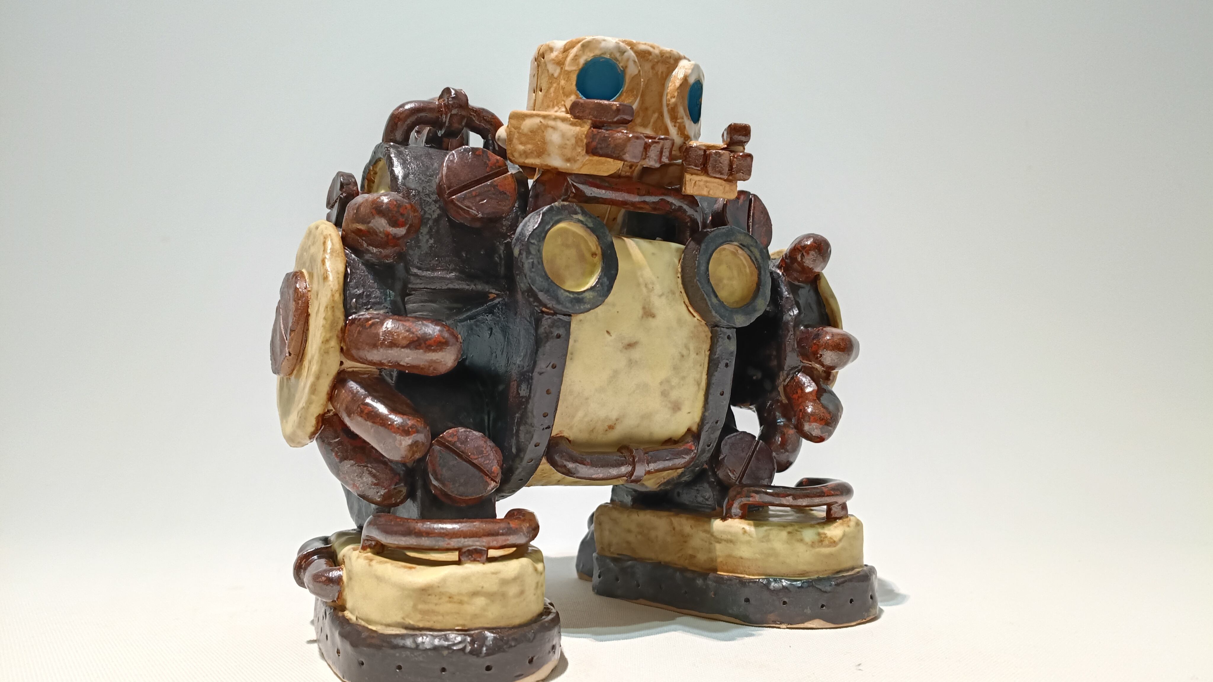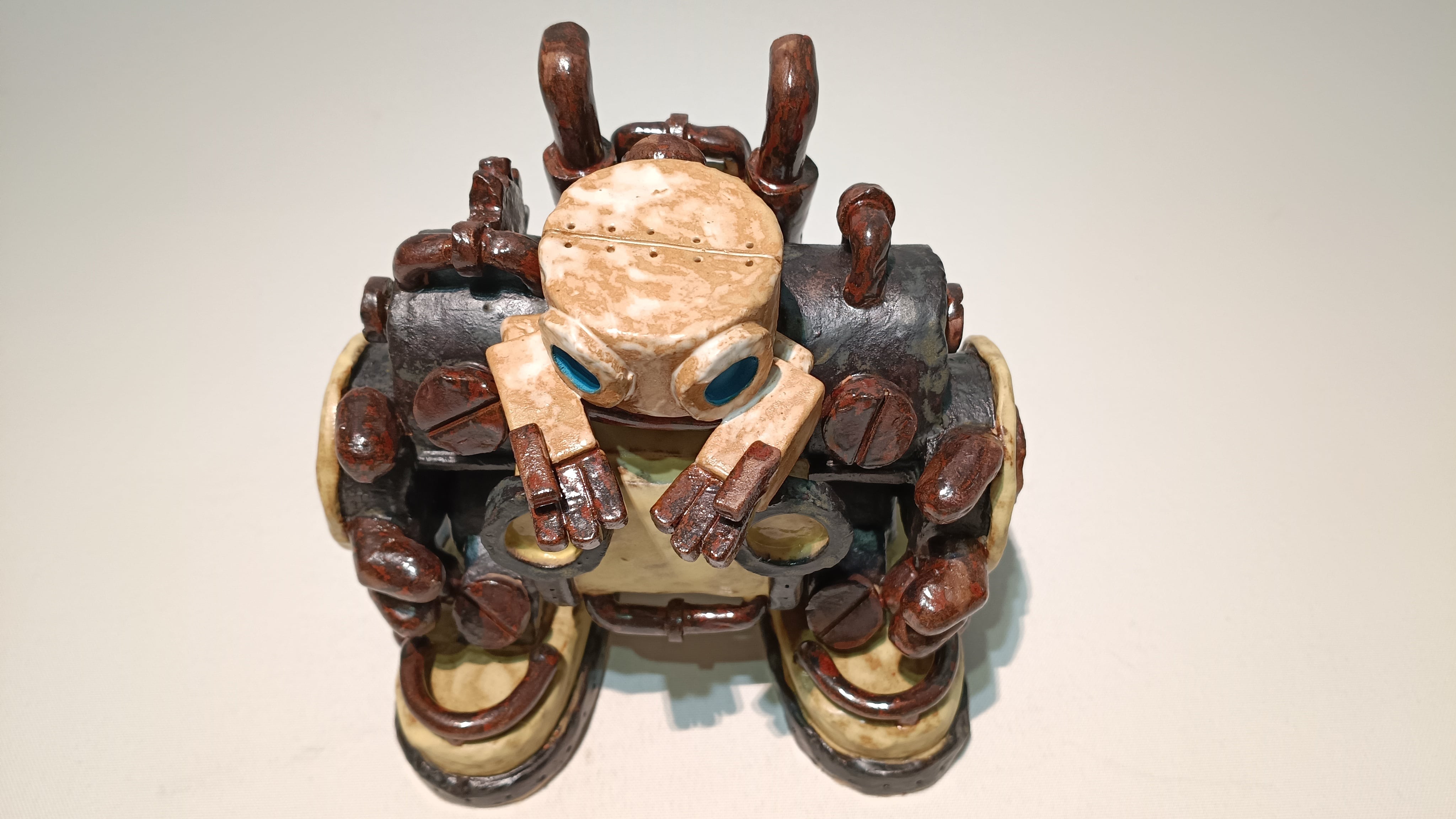 大型ロボットに乗って名刺を配るトーキー。