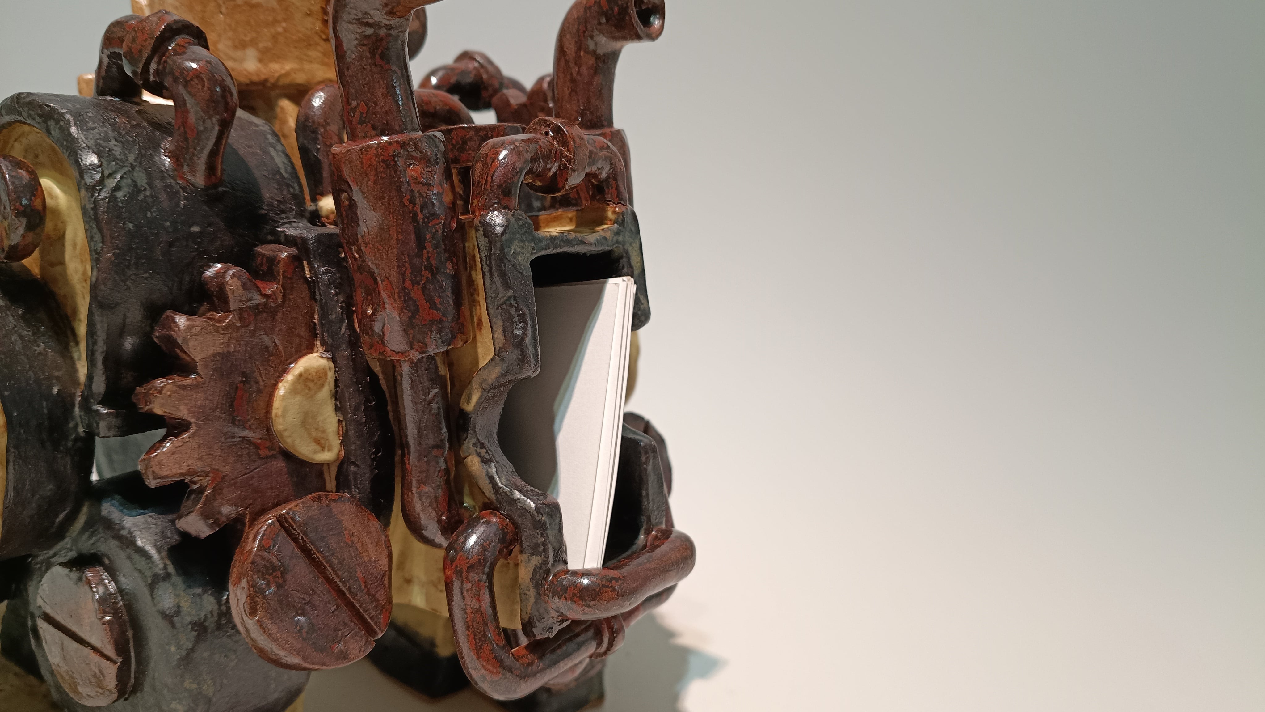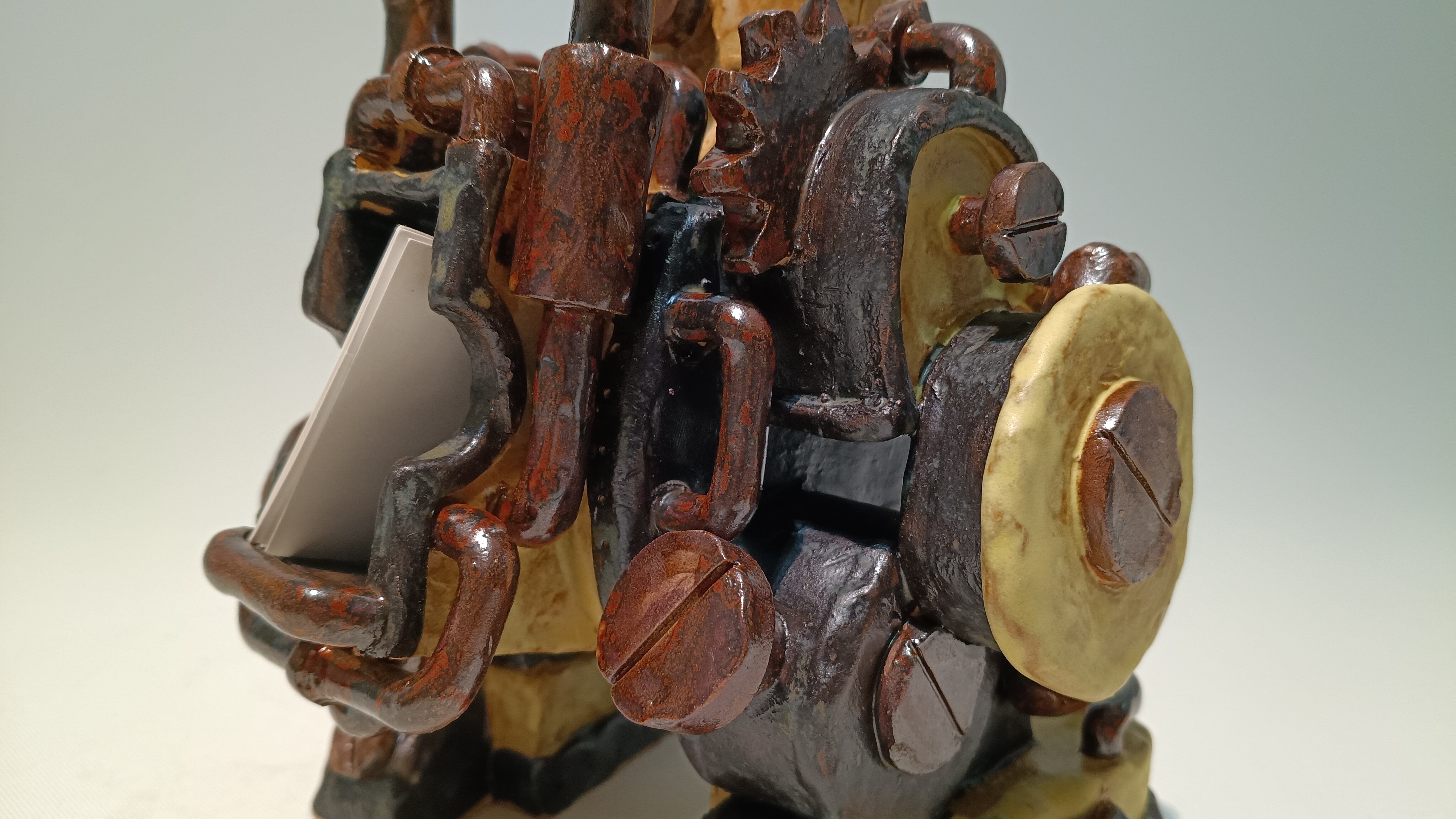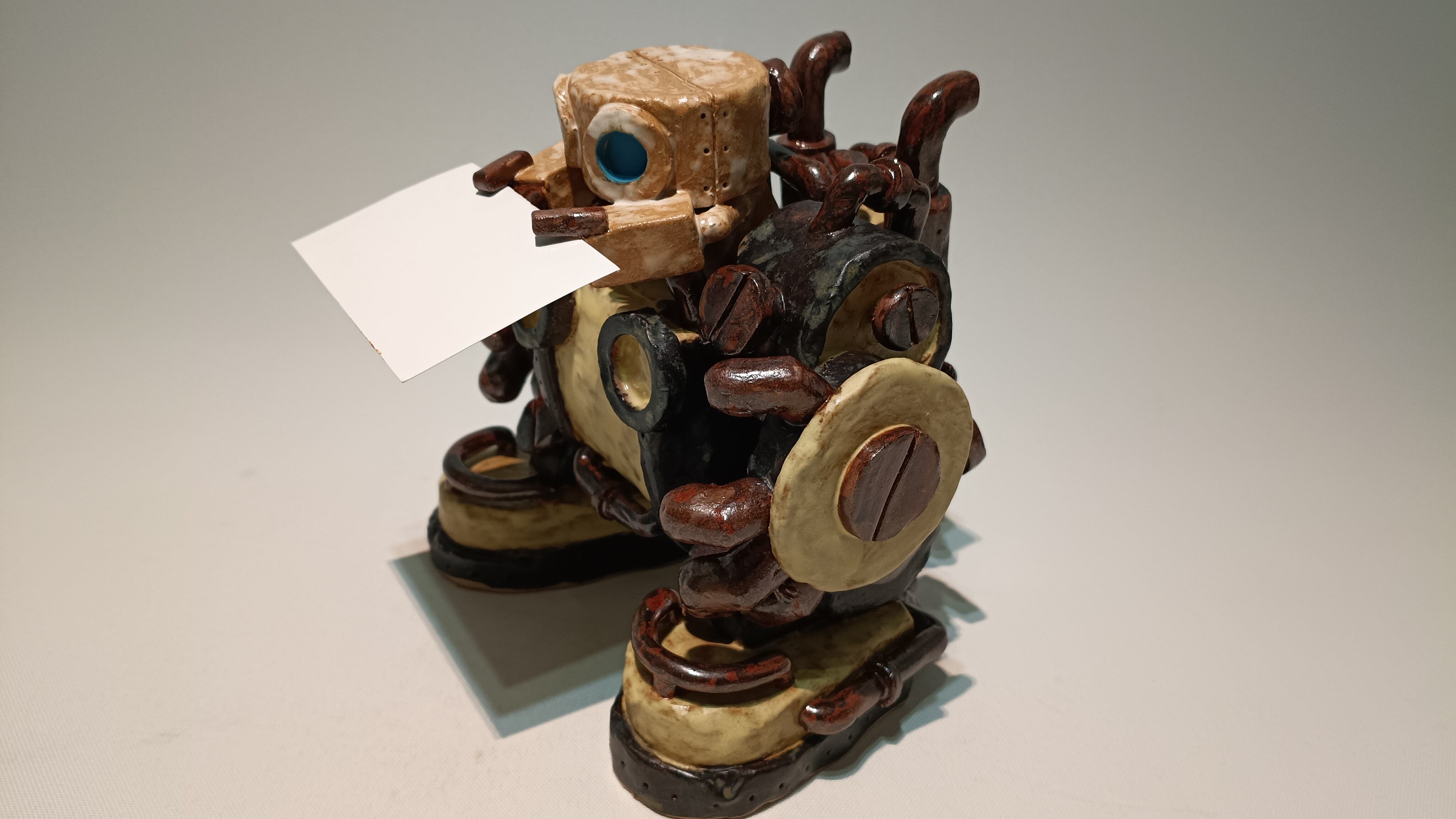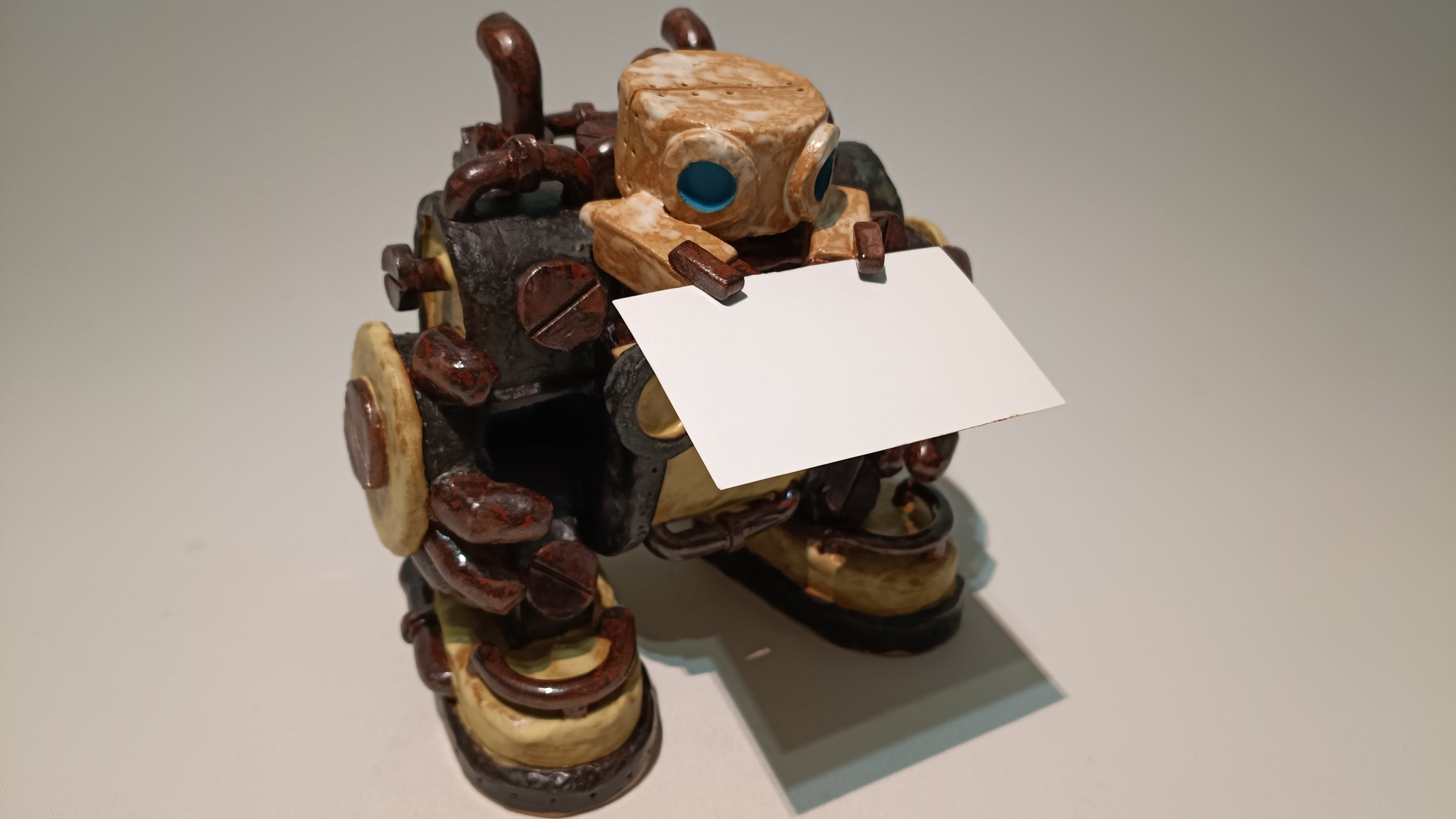 トーキーの手に名刺を挟めて、ロボットの背面には予備名刺が入るようになっています。